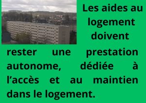 Les aides au logement doivent rester une prestation autonome, dédiée à l’accès et au maintien dans le logement.